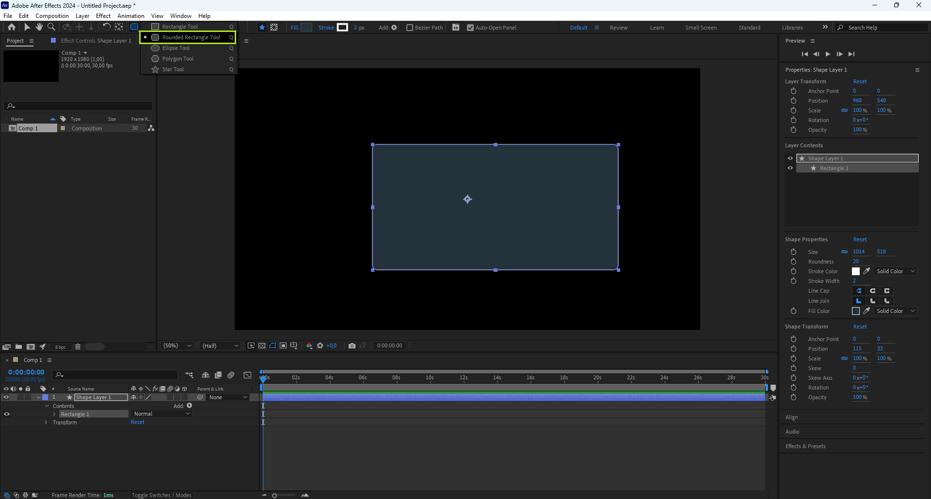 Berikut cara memindahkan Anchor Point (titik tengah layer) tepat ke tengah rectangle (shape/layer):