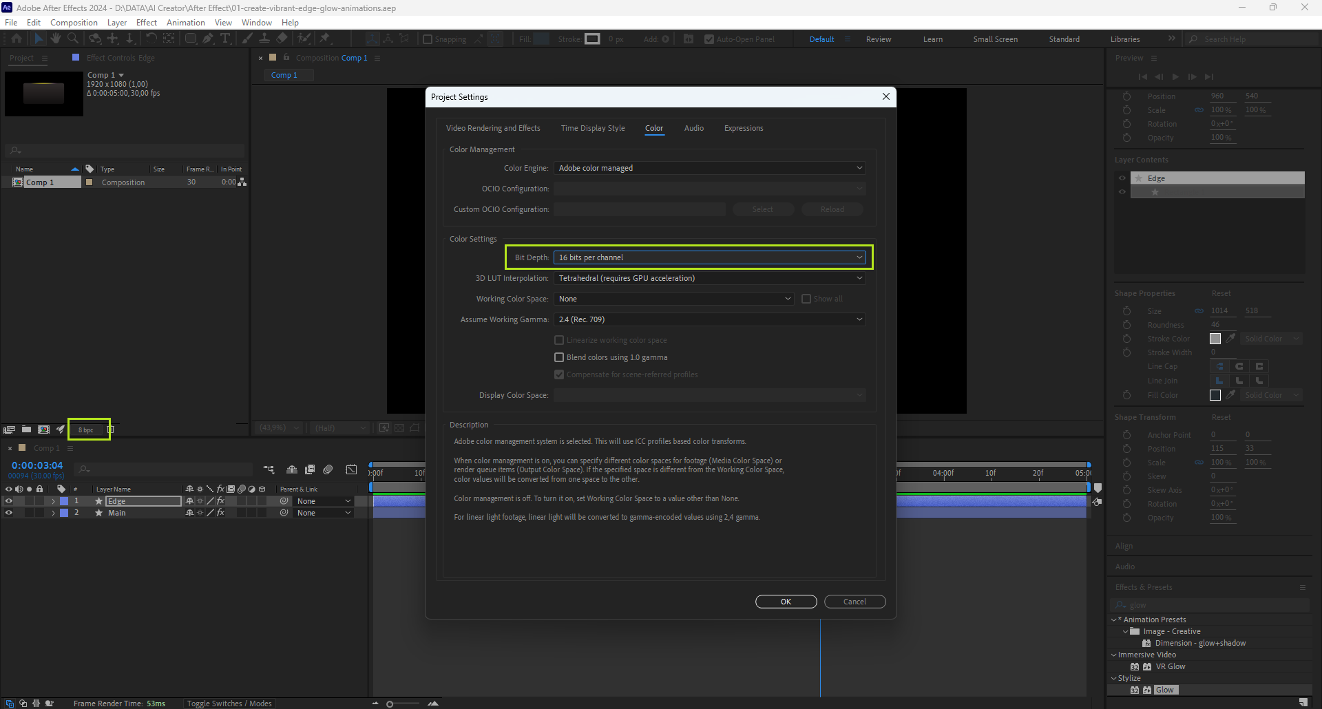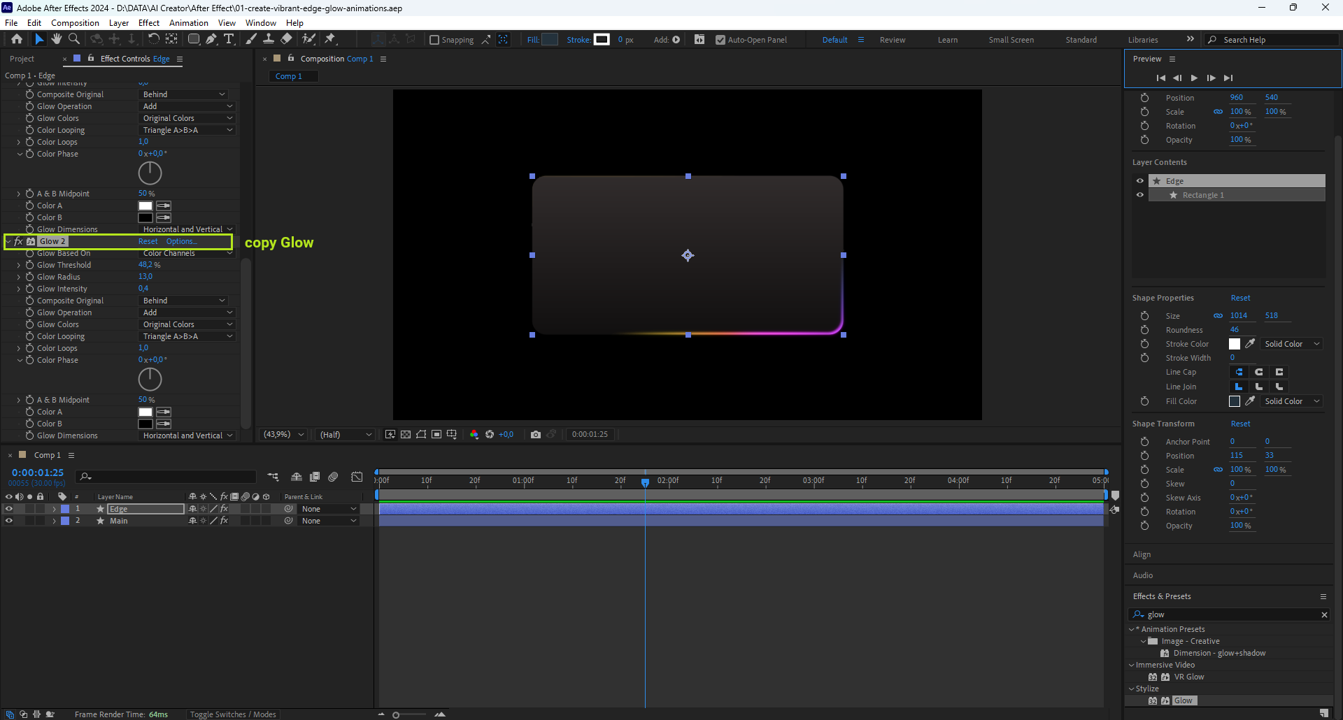 01 Create Vibrant Edge Glow Animations In After Effects