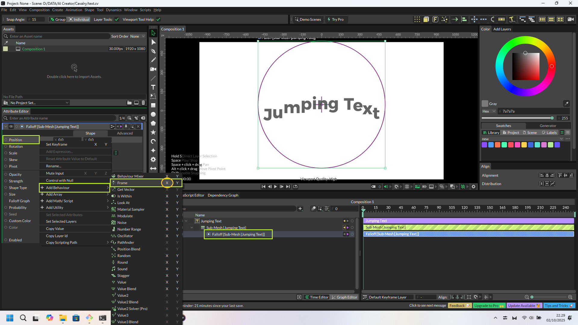 Jumping Colorful text - Cavalry Tutorial (ZERO KEYFRAMES)